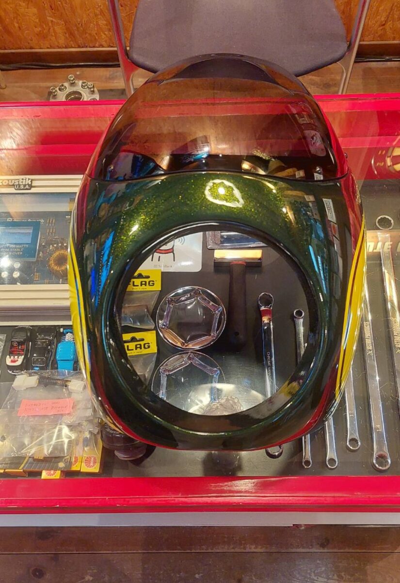 ↑最後にキャンディグリーンパールで塗装、クリアーをラインフラットなるまで何回か分けて塗装し完成✌️